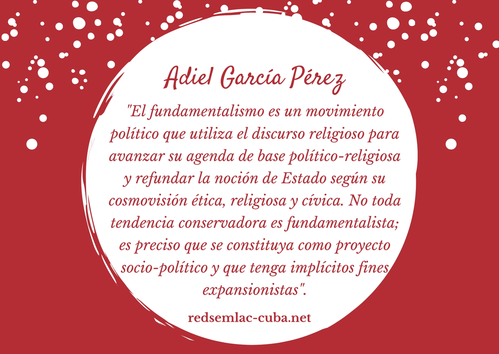 La aparición de los movimientos fundamentalistas en las últimas décadas tiene espacios comunes que nos permiten entender que estamos frente a un fenómeno global con pretensiones hegemónicas y que analizaremos más adelante. Lo cierto es que el carácter expansionista de la tradición fundamentalista evangélica no solo se comprueba con la experiencia de Estado Unidos, donde se conforma y escurre hacia otros países como Costa Rica, Colombia, Brasil y ahora Cuba; sino que por esa razón ha sido definida como una “cultura religiosa transnacional”.
